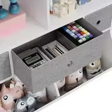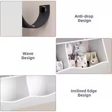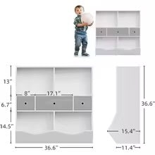 This children's bookcase features open shelves for easy book organization and a large bottom compartment for toys or baskets. It’s designed for easy access by kids, encouraging reading and tidiness. Made from sturdy MDF with an anti-tilt device, it ensures safety and stability. Its compact white design fits well in bedrooms, nurseries, or living spaces, serving as versatile storage for books, toys, or other items. Assembly instructions and hardware are included.